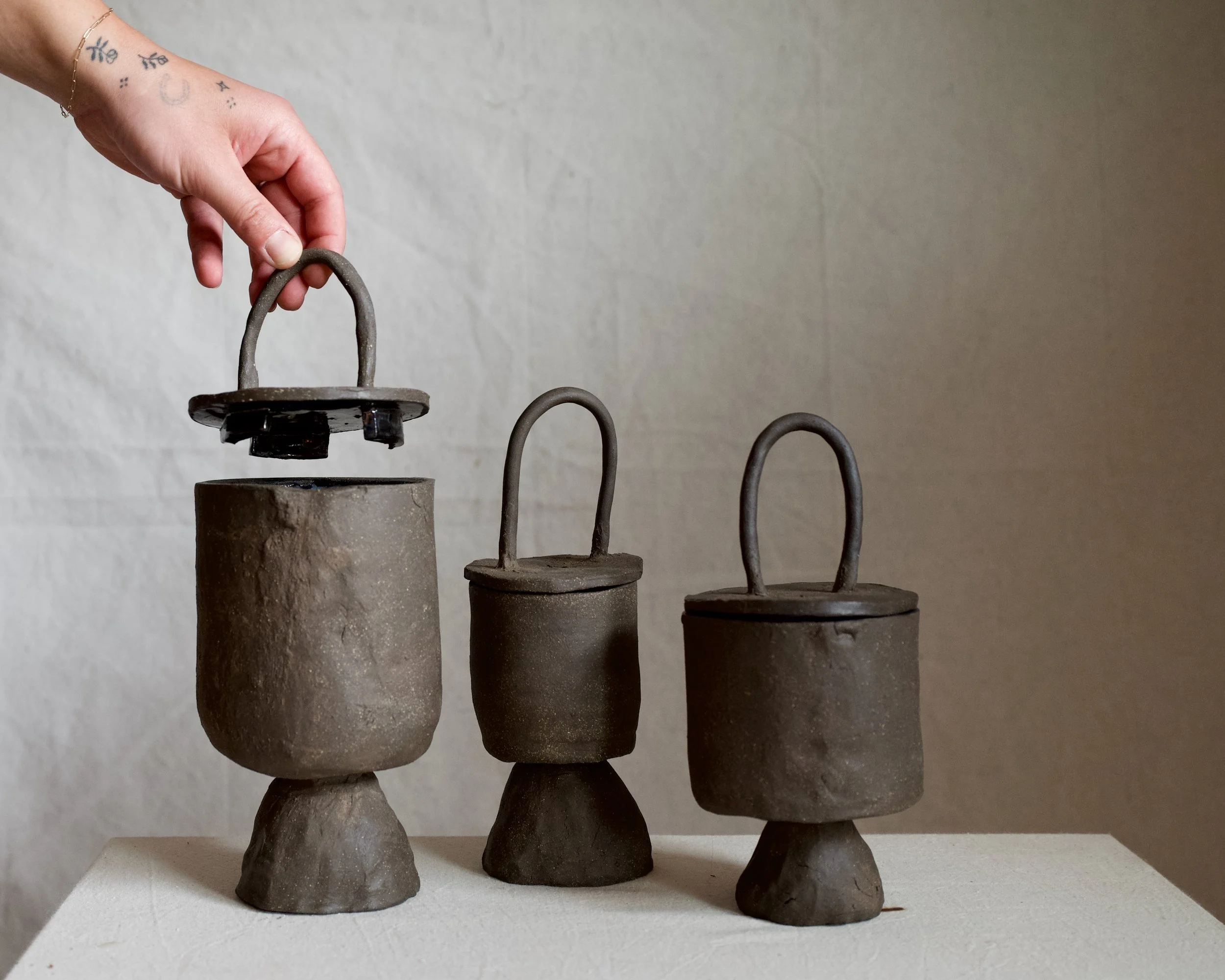 Categories: All objects for daily ritual rituals incense holder wearables available offerings All | objects for daily ritual | rituals | incense holder | wearables | earthen jug vessel 22 $100.00 Only 1 available earth jug vessel $95.00 Only 1 available full belly ceramic vessel dark textured $290.00 Only 1 available little jug $50.00 Only 1 available emotional brush with sycamore and horse hair $300.00 Only 1 available ceramic chain ritual vessel $130.00 Only 1 available little moments shell earring #3 $68.00 Only 1 available little moments shell earring #1 $68.00 Only 1 available little moments shell earring #2 $68.00 Only 1 available spiral shell dish $65.00 full belly ceramic vessel incense holder $290.00 Only 1 available full resting belly ceramic incense burner Sale Price: $170.00 Original Price: $200.00 Only 1 available Sale plains ceramic incense vessel $160.00 Only 1 available little full belly vessel Sale Price: $95.00 Original Price: $100.00 Only 1 available Sale charred yin yang chore brush $85.00 Only 1 available alter bud vase $240.00 Only 1 available big ray earrings $190.00 Only 1 available little ray silver earrings $112.00 Only 1 available morph cuff $120.00 Only 1 available morph earrings from $160.00 to hold ceramic vessel w/ beaded tassel $65.00 Only 1 available to hold ceramic vessel $95.00 Only 1 available little rock ceramic candle holder Sale Price: $36.00 Original Price: $68.00 Only 1 available Sale little rock ritual candle holder Sale Price: $60.00 Original Price: $80.00 Only 1 available Sale pone x ma-pa : reuse collection : tile and walnut side table pedestal $324.00 Only 1 available